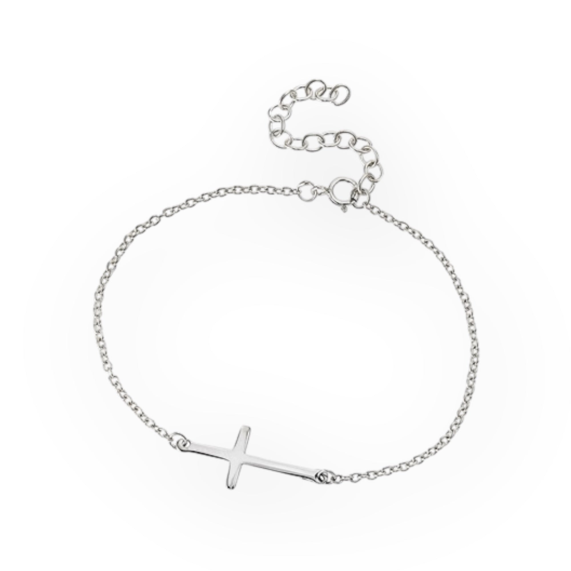 Elevate your style with our minimalistic Sterling Silver Cross Bracelet. The simple yet beautiful solid sterling silver design features a cross chain bracelet, with a base length of 7" and an additional 1.5" extension chain for the perfect fit. Perfect for everyday wear or special occasions. Cross measures 25mm L x 10mm W.