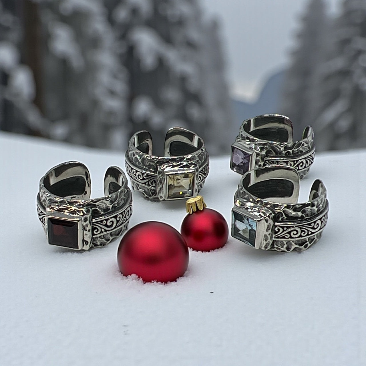 • VIBRANT GEMSTONE: Features a bold, square-cut natural gemstone (Garnet, Blue Topaz, Citrine, or Amethyst).