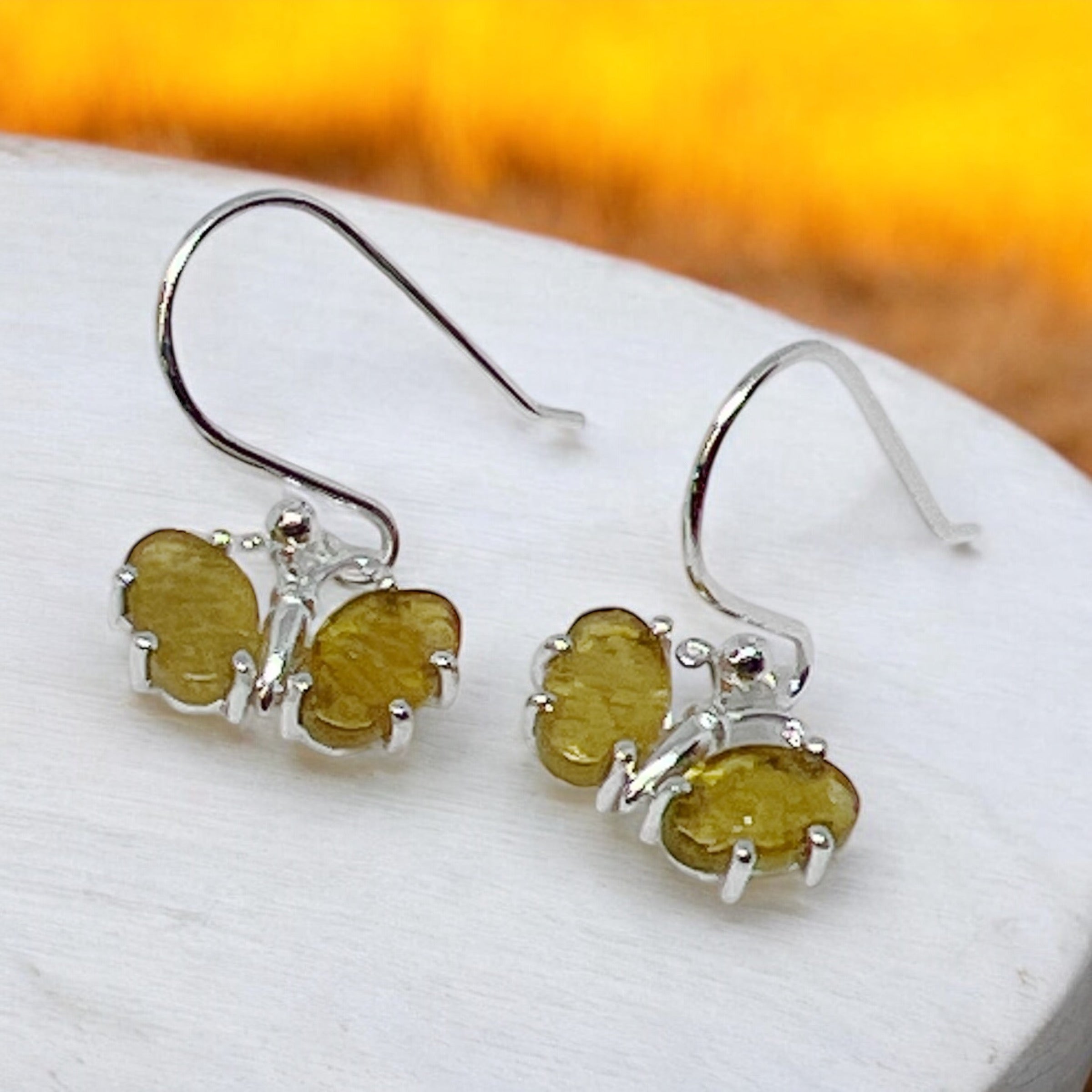 Gemstone Butterfly Sterling Silver Earrings