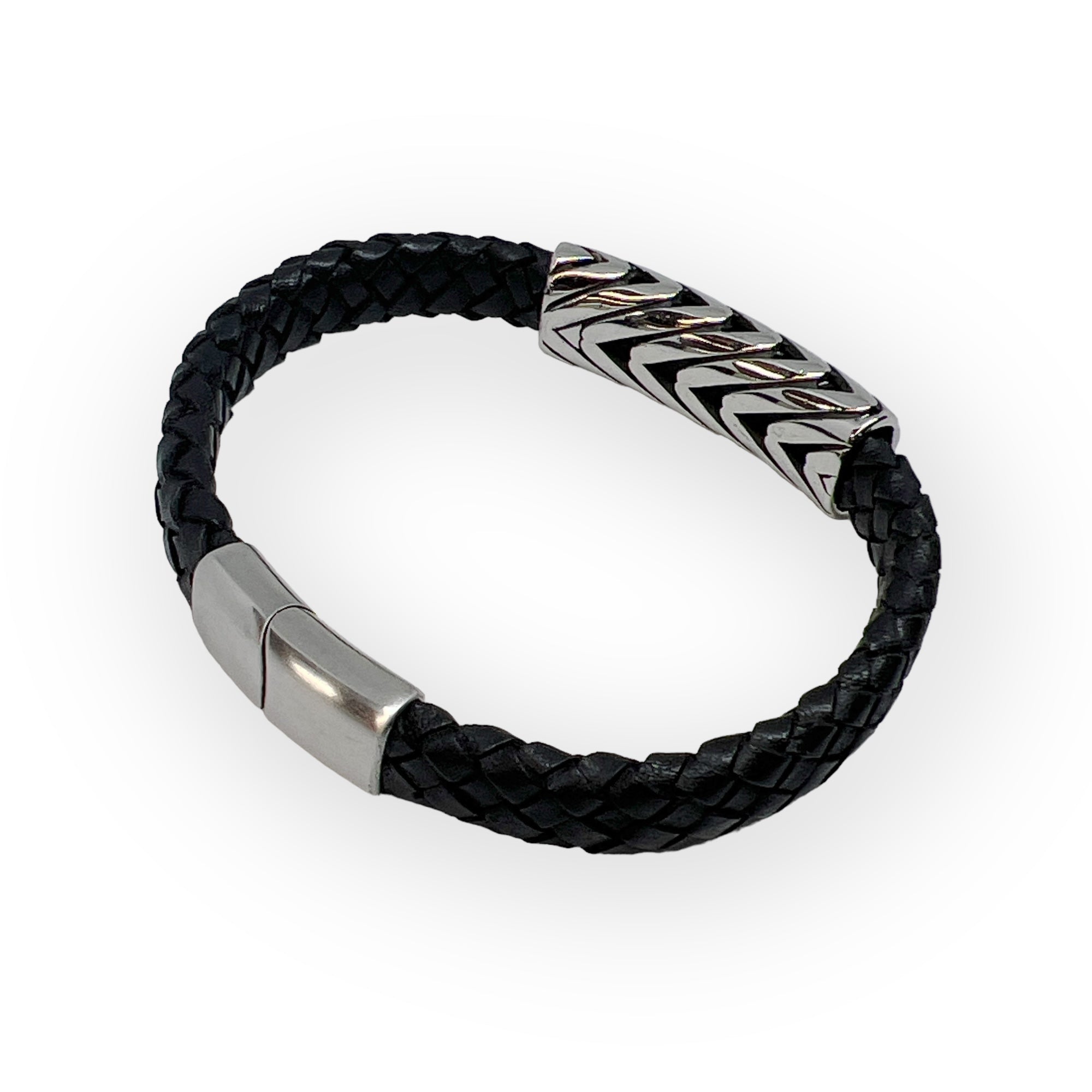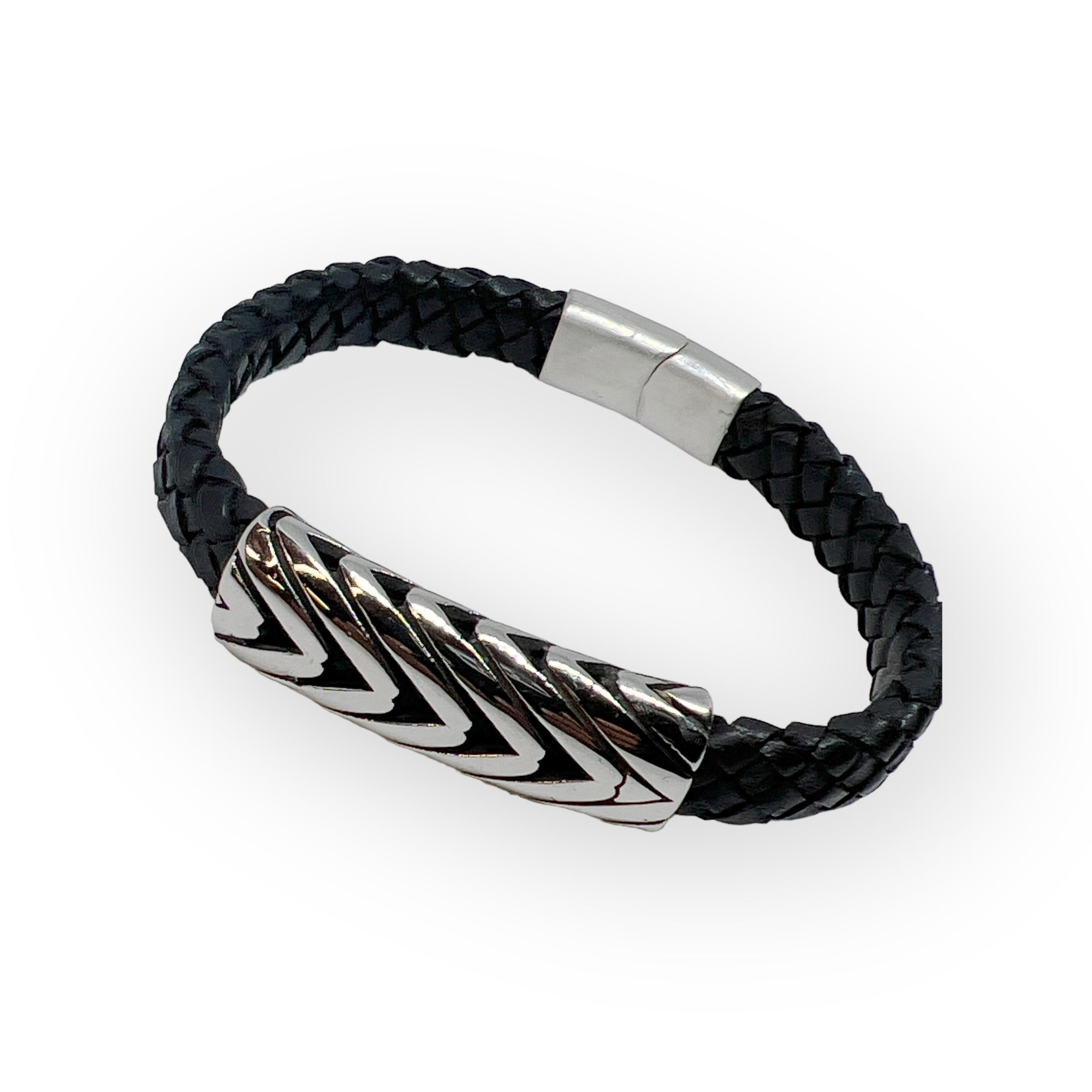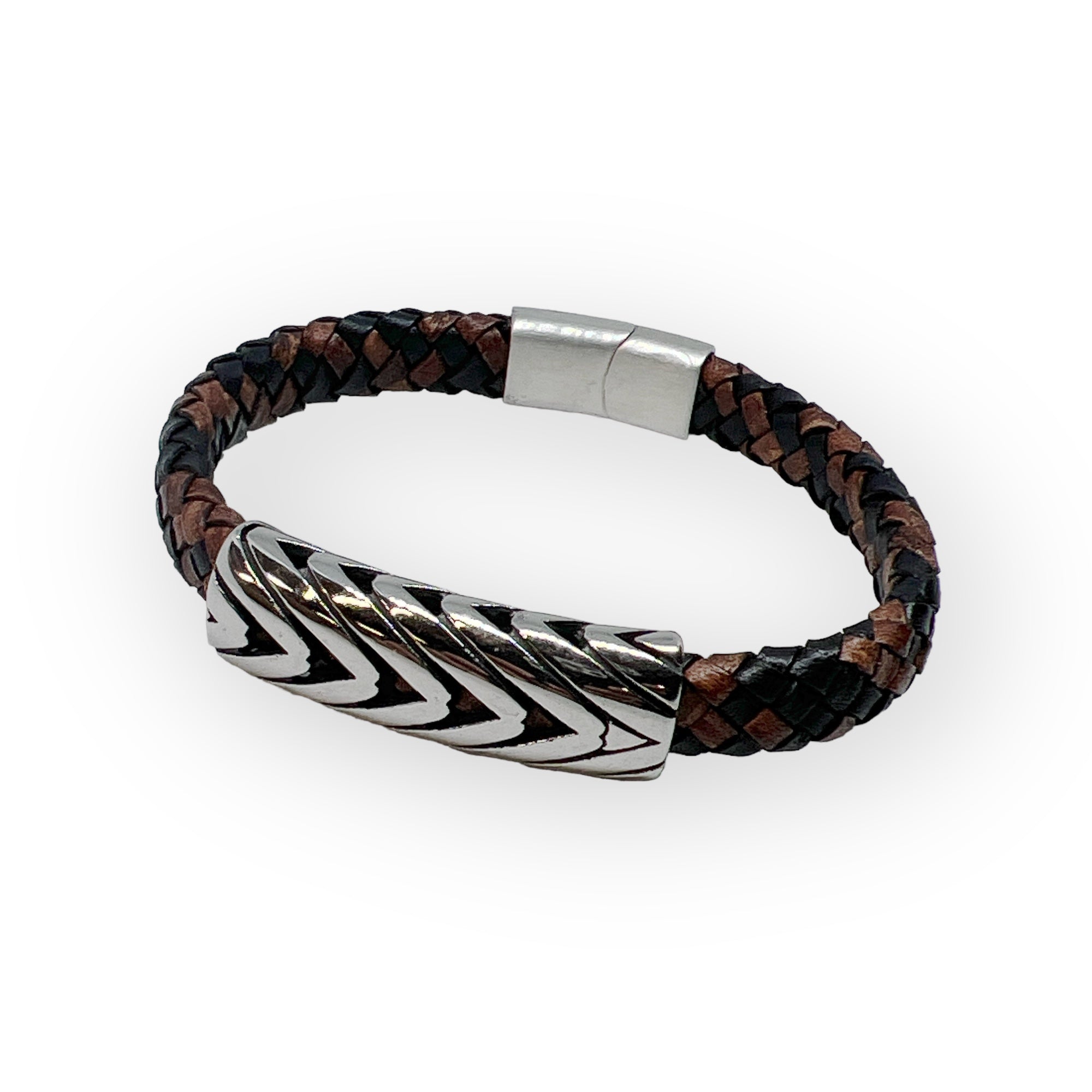 Elevate your style with the Stainless Steel Leather Braid Motion Bracelet. Crafted with premium leather and a sleek stainless steel focal component, this minimalist accessory celebrates your natural, forward-moving mindset. Enhance your personal journey with this artisan piece.