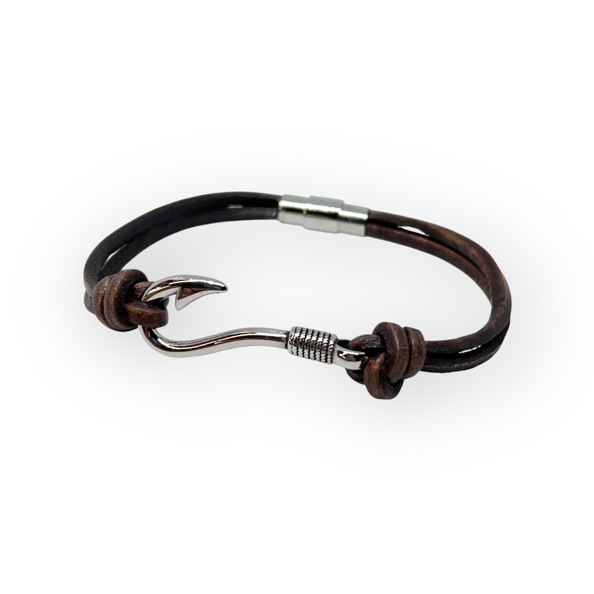 Introducing the Everyday Fisherman Leather Bracelet. Made with the finest stainless steel and natural leather, this bracelet features a stainless steel fishhook design and a convenient locking magnetic clasp. Available in a variety of sizes and colors, it's the perfect accessory for the modern outdoor enthusiast.