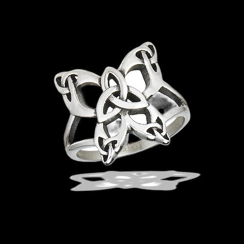This unique Celtic trinity butterfly stainless steel ring brings a touch of timeless artistry to your look. Crafted with intricate attention to detail, its design and sturdy construction is sure to last. Face height of ring is approximately .75".