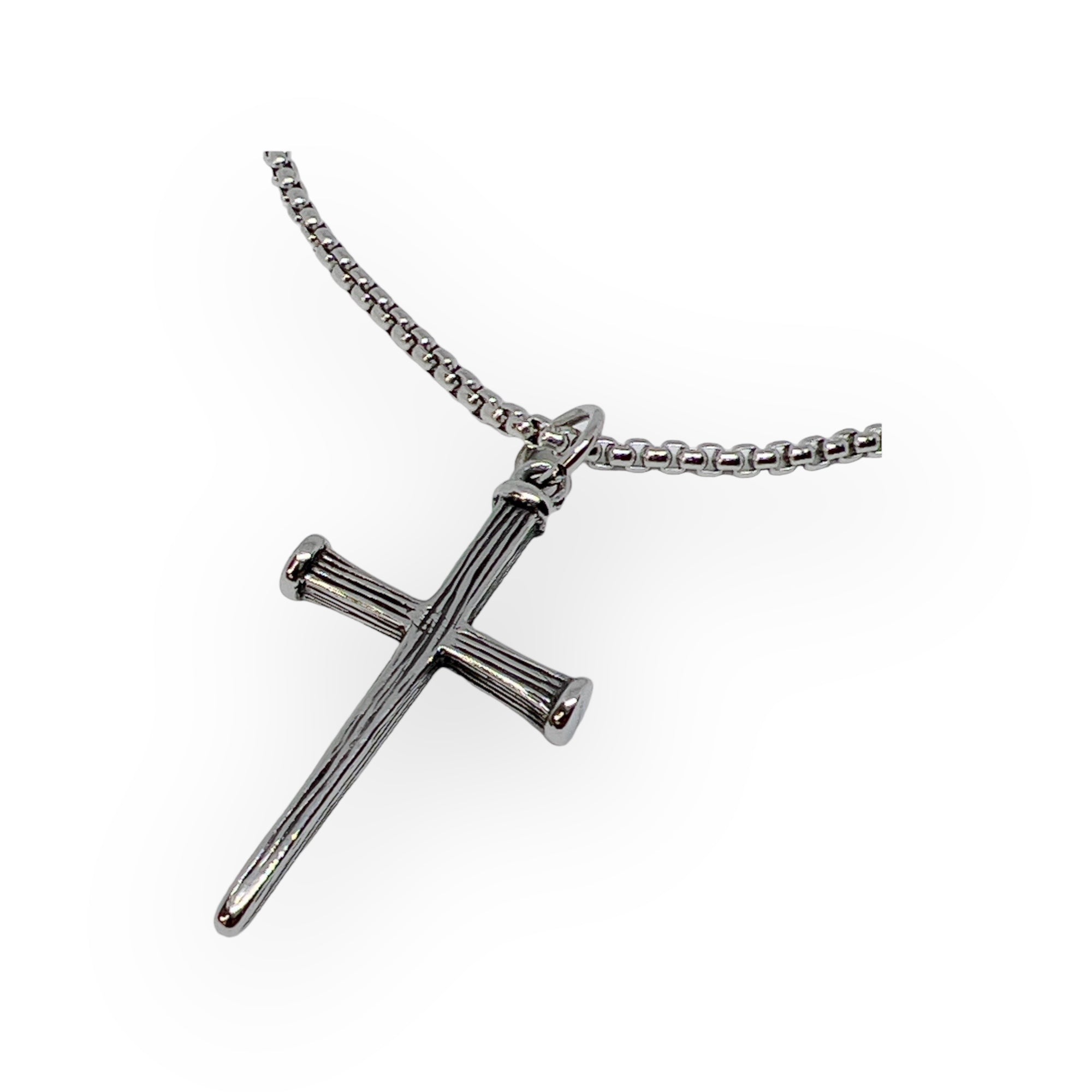 Enhance your look with this stainless steel Enlightened Nail Cross Necklace, featuring a 1.5" x .8" nail cross pendant on a 2.4mm Venetian box link chain. Perfect for everyday wear, this stylish necklace will be a timeless addition to your collection.