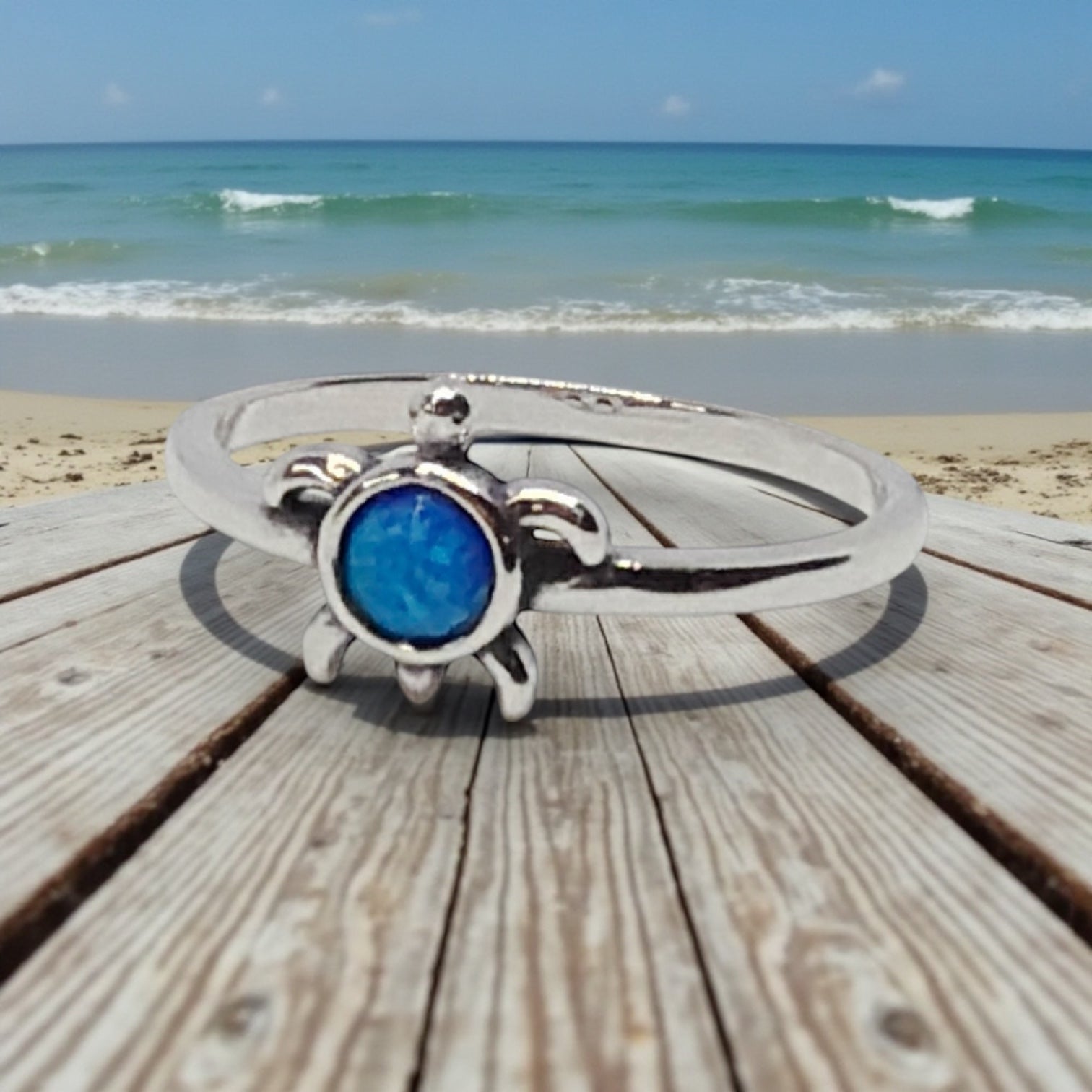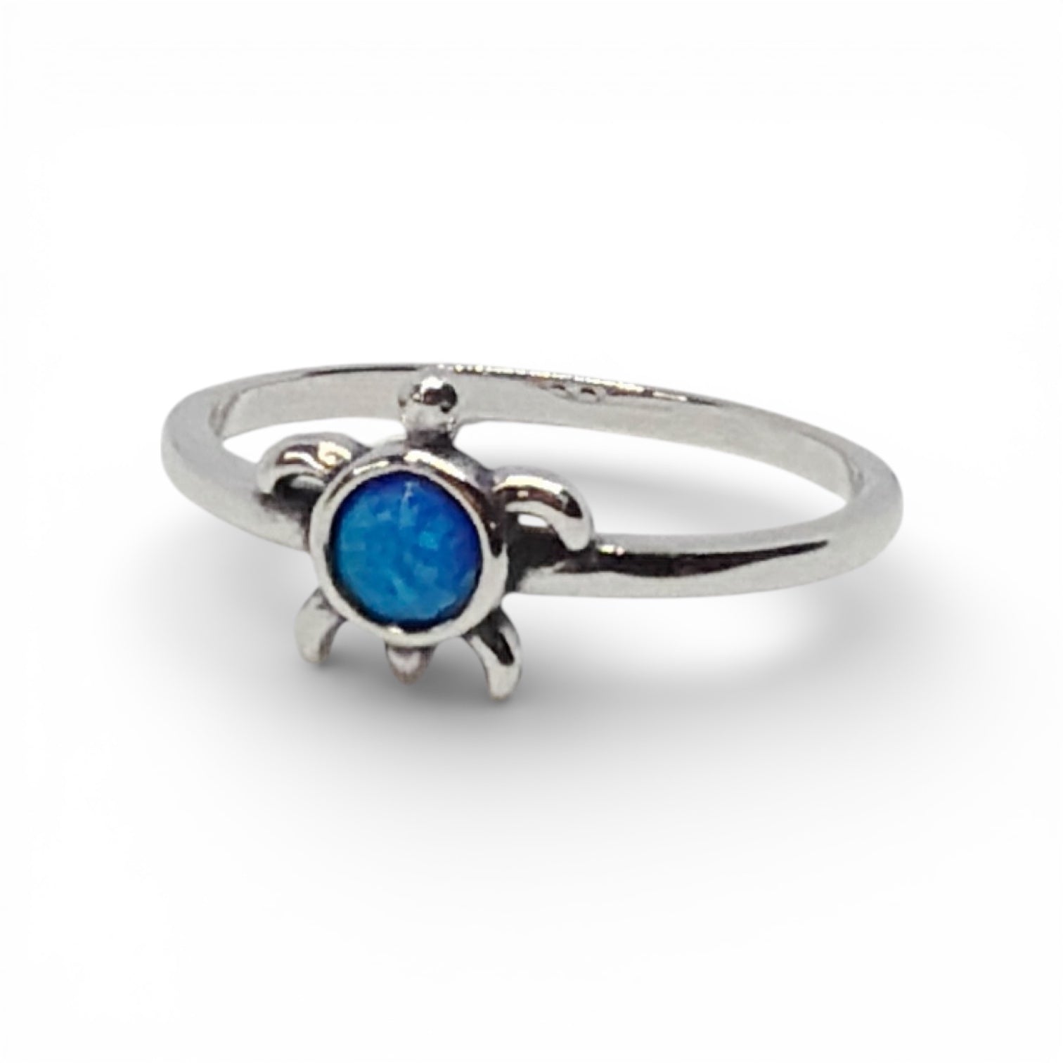 "Honu" Blue Opal Turtle Ring Petite 925 Sterling Silver Sea Turtle Band Ring