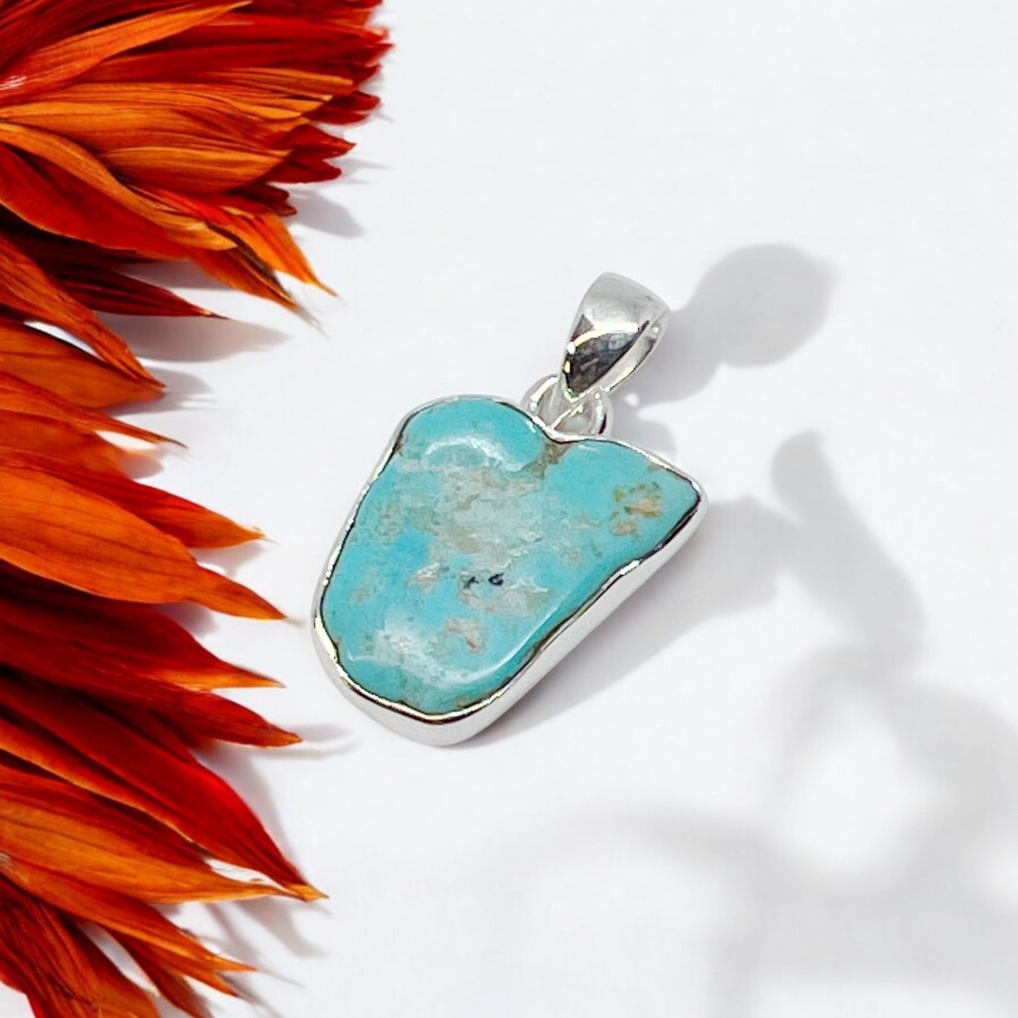 Introducing our handcrafted Kingman Turquoise Sterling Silver Pendant. Made with 925 sterling silver and natural, untreated , hand cut and polished Kingman Turquoise Rough gemstone. This pendant measures approximately 1”L ( including bail) x .5”W. Elevate your style with the simplicity and beauty of Simple Natural Design.