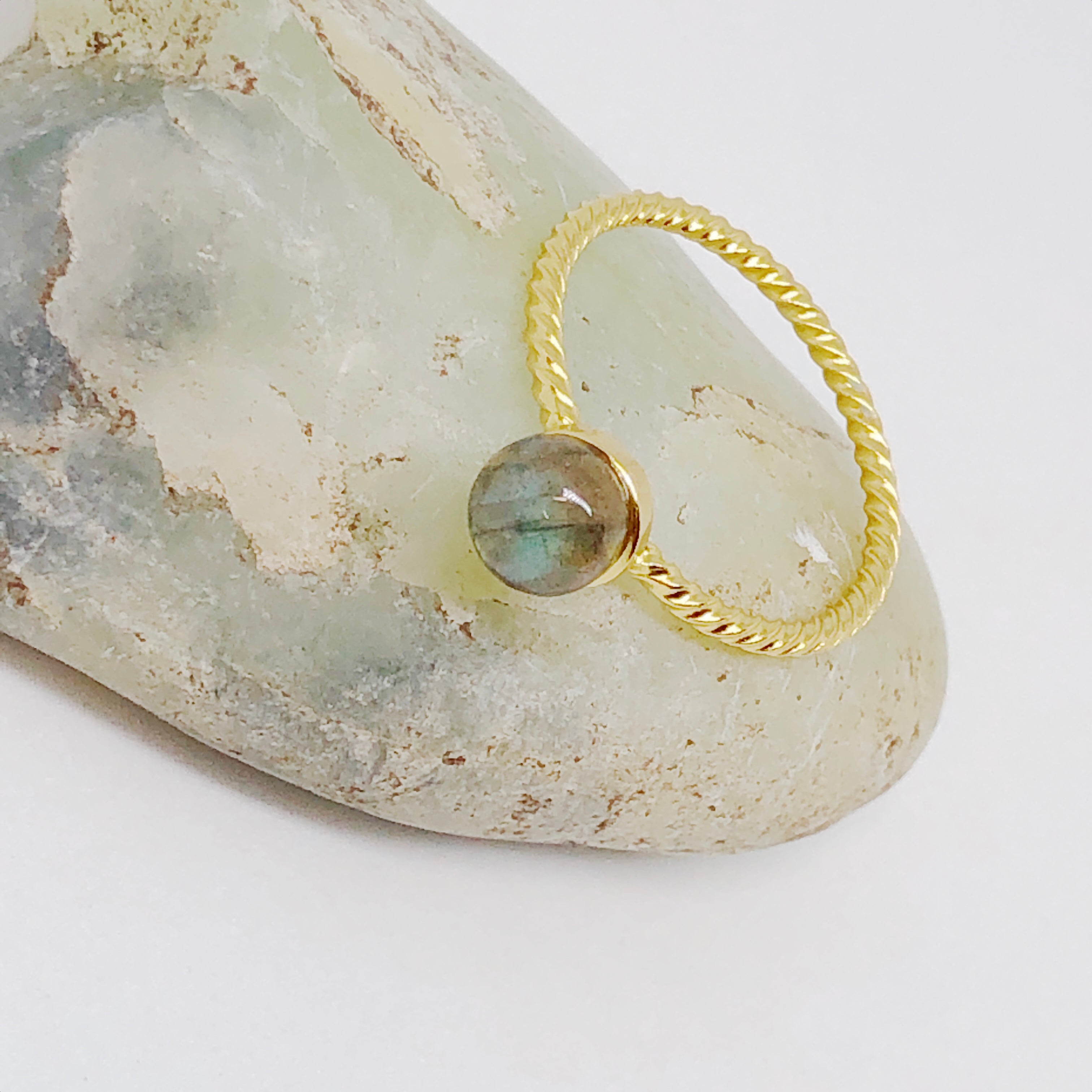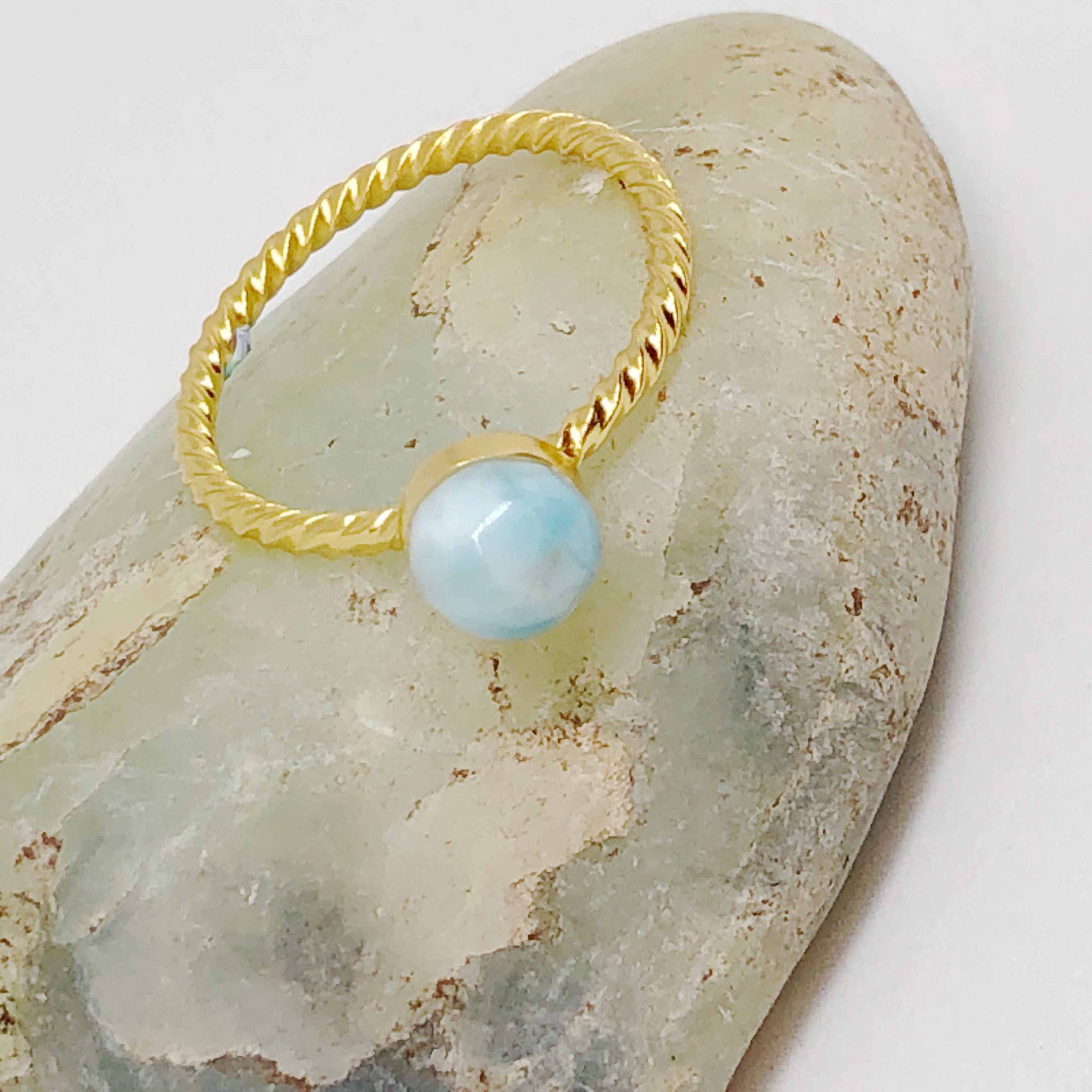 6mm round cabochon natural Larimar, Labradorite or Moonstone gemstone Solid 925 Sterling Silver, high quality pure1 micron thick 18kt gold plated ring.