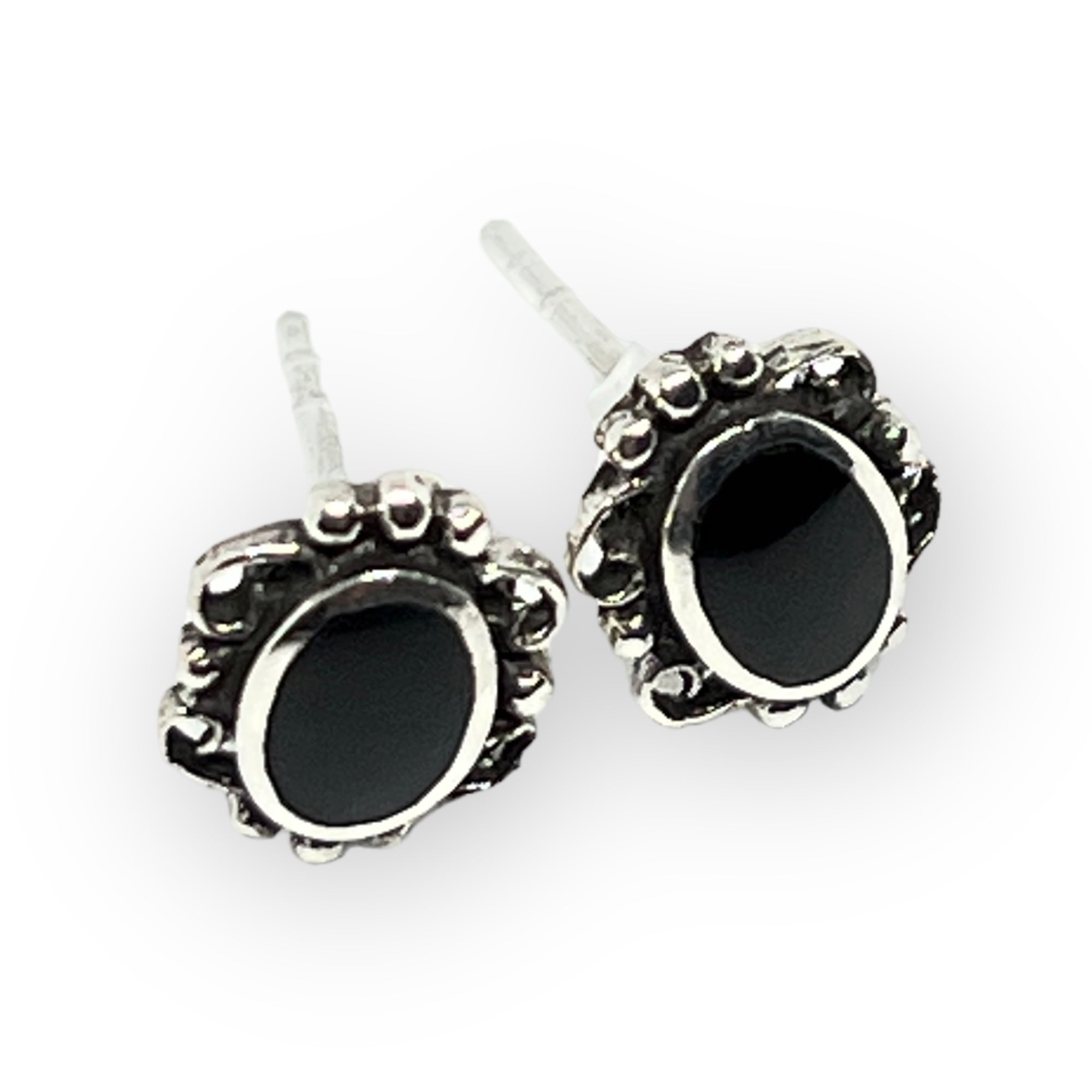 Black Onyx Filigree Stud Sterling Silver Earrings