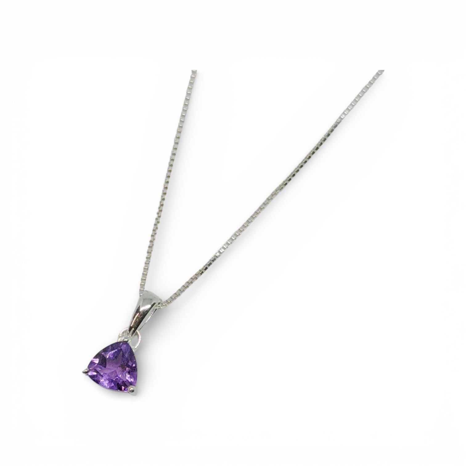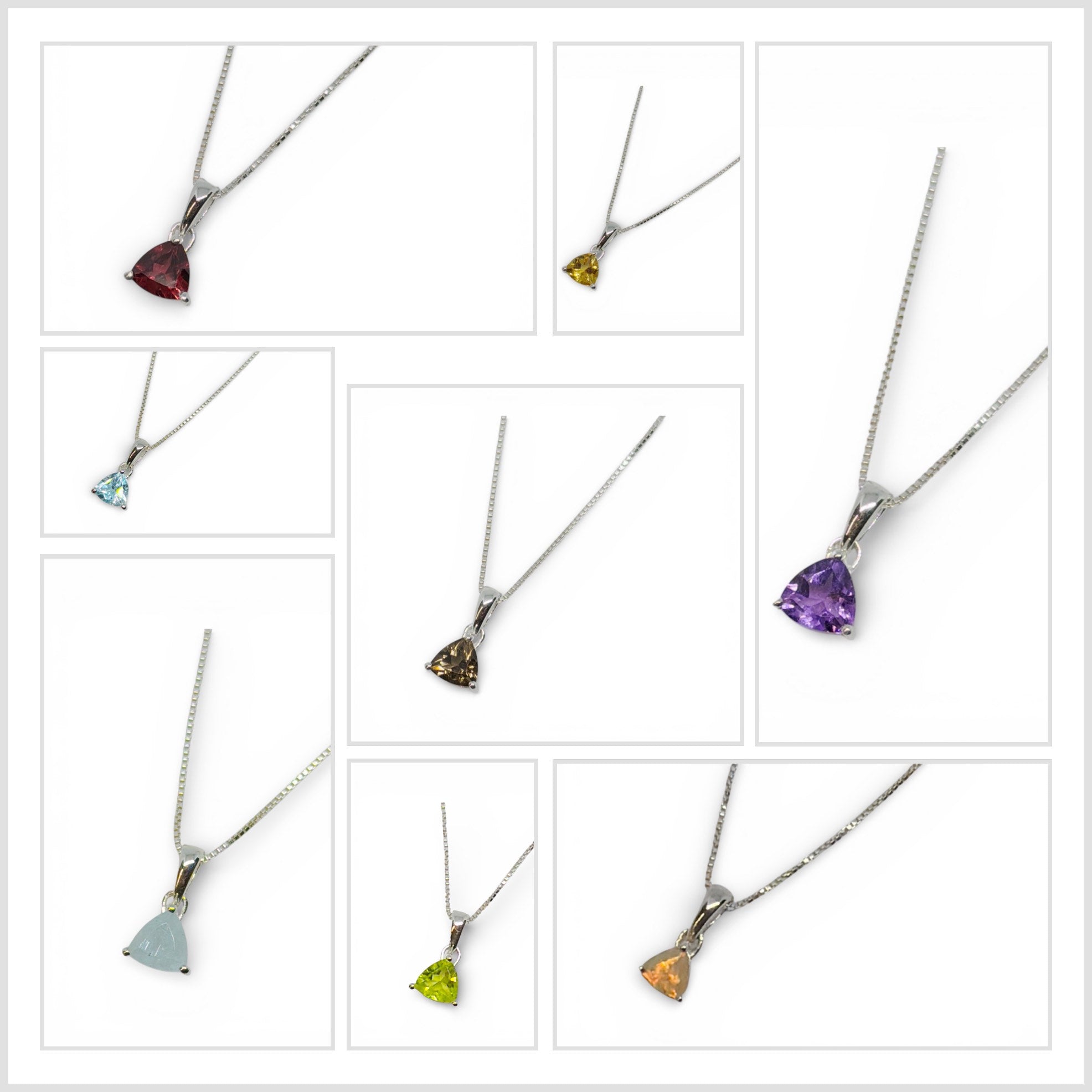 Elevate your everyday style with our Trillion-Cut Gemstone Collection. Each necklace features a hand-selected, genuine gemstone precisely cut into a brilliant triangular "trillion" shape to maximize light and color. Suspended from a dainty yet durable Venetian box chain, these necklaces offer a modern, minimalist silhouette perfect for layering or wearing as a standalone statement piece.