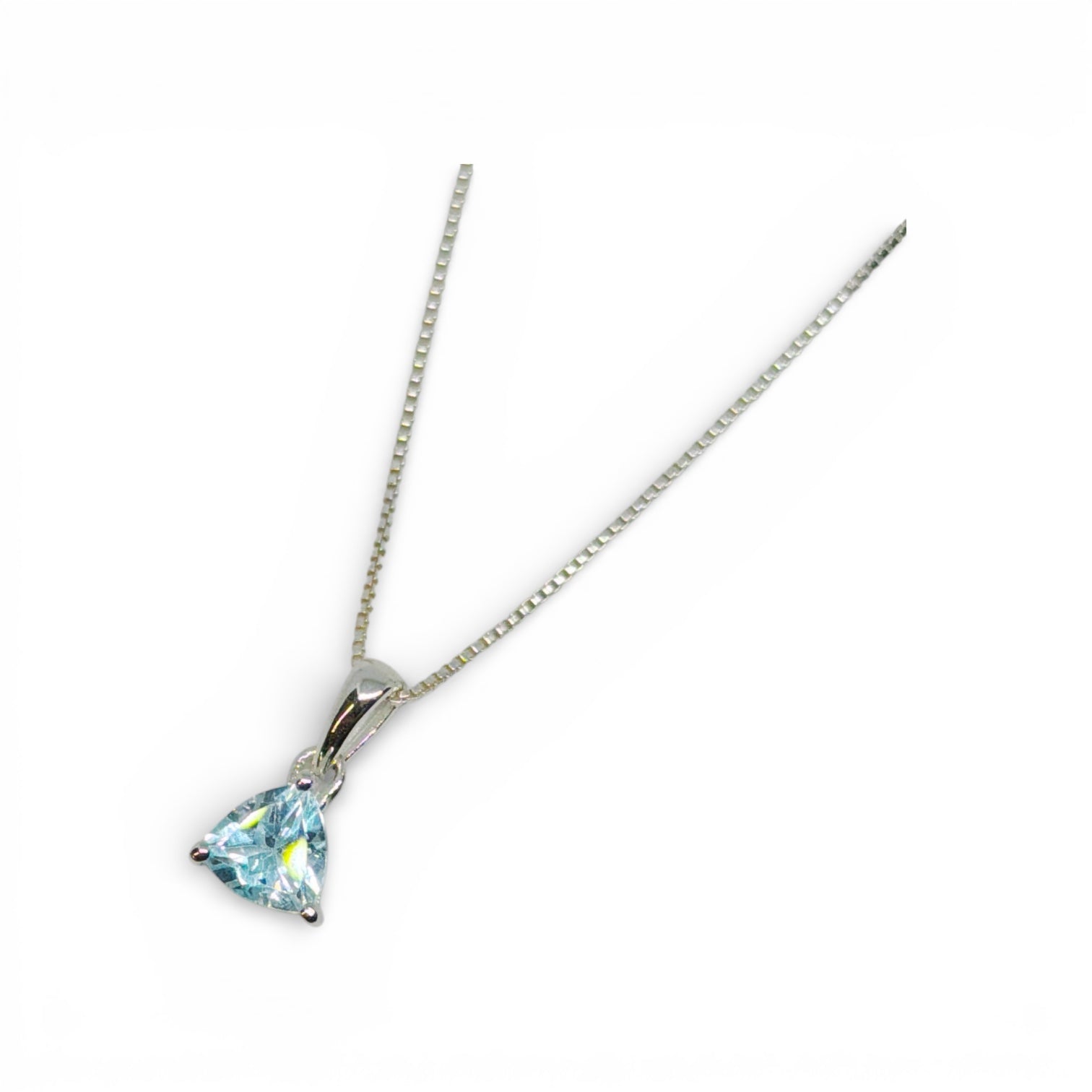 Trillion-Cut Natural Gemstone Necklace – .925 Sterling Silver Solitaire Pendant