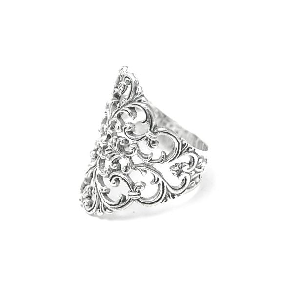 Wide Floral Filigree Sterling Silver Ring